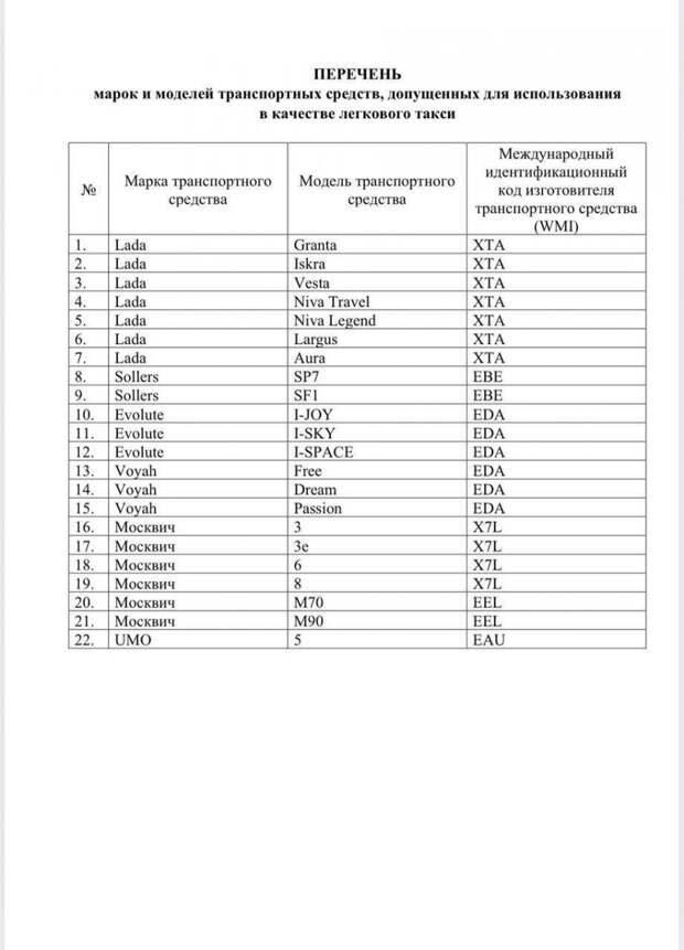 Центр транспортных услуг региона опубликовал актуальный список автомобилей отечественного и локализованного производства, разрешенных к использованию в качестве легкового такси на территории Курской области.