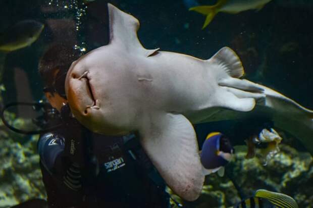 «Они любят обниматься и у них есть особые рецепторные точки, прикосновение к которым доставляет удовольствие. Если почесать акулу около носа, она погружается в полутрансовое состояние. Они специально приплывают для этого и терпеливо ждут», - делится команда аквариума.